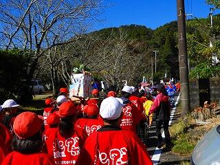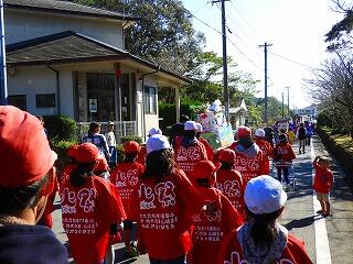 地域の祭り行列、保育所の行列の後に、元気よく、「ワッショイ、ワッショイ!」のかけ声を掛けて行列しました。