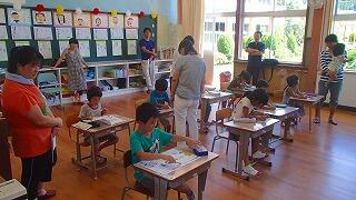 終業式が始まる前に、新しいお友だちの紹介をしました。
