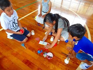 最初に先生が作り方の説明をして、その後、上級生が下級生に教えながら、制作活動をしました。