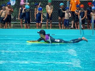 今日は、約1年ぶりに学校のプールを使ってサーフィン教室を実施しました。