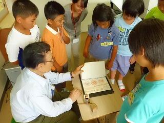 途中で、織田信長、豊臣秀吉、徳川家康の印をみて、児童たちは驚いていました。