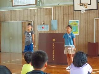 次に、一学期を振り返って、2人の児童が作文を発表しました。
