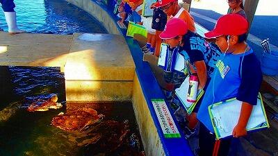 施設の中に入って、アカムミガメのプールのところや、タッチプールで、海の生き物に触れていました。タッチプールでは実際に魚や生き物に触れて、いろいろと感激していました。