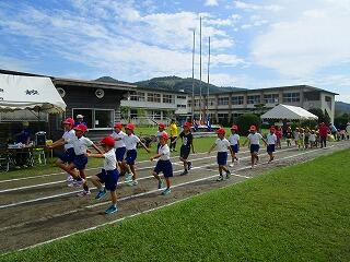 予行練習では、全員リレー、台風の目、全校ダンス、市木ソーラン節、保育所低学年の合同団技、綱引き、団対抗選抜リレーを中心に行いました。