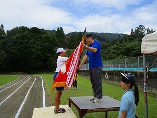 昨年度優勝した白団の団長から優勝旗を受け取りました。