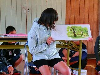 最初に、各学年部ごとに紹介したい本のブックトークを行い、次に6年生が読み聞かせをしてくれました。