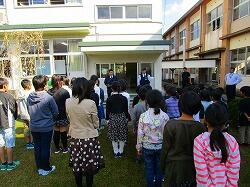 本年度2回目だったので、子どもたちは落ち着いて素速く行動し、避難することができました。最後に、訓練の反省と、生活安全面で注意した方がよいことについてご指導いただきました。