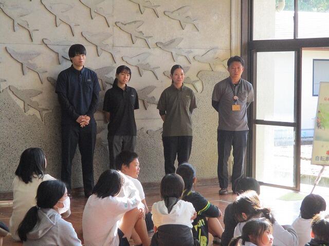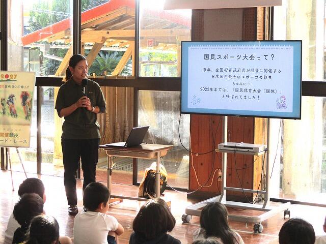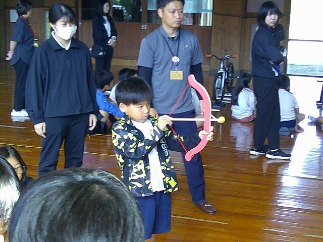 10月30日(木)3・4校時に、2027年に宮崎県で開催される「国スポ・障スポ」において、串間市開催予定の2つの競技の体験会を行いました。串間市商工観光スポーツランド推進課から4名の方に来校いただきました。始めに「自転車ロードレース・弓道」の競技についての説明を受け、その後体験をさせていただきました。2年後に向け、串間市開催の競技に、子どもたちの興味・関心が高まりました。