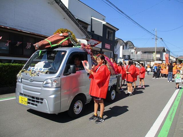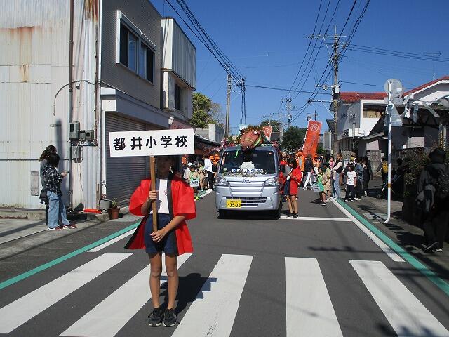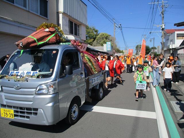 11月3日(月)秋まつりパレードに参加しました。3~6年生は岬音頭を踊りながら、1・2年生は「みどりの少年団」の緑化推進に係る募金活動を行いながら、みんなで楽しく参加することができました。6年生が交代で、マイクを使って学校紹介を行いました。沿道の皆様から、あたたかい拍手や募金をいただきながら、天候に恵まれたパレードでした。