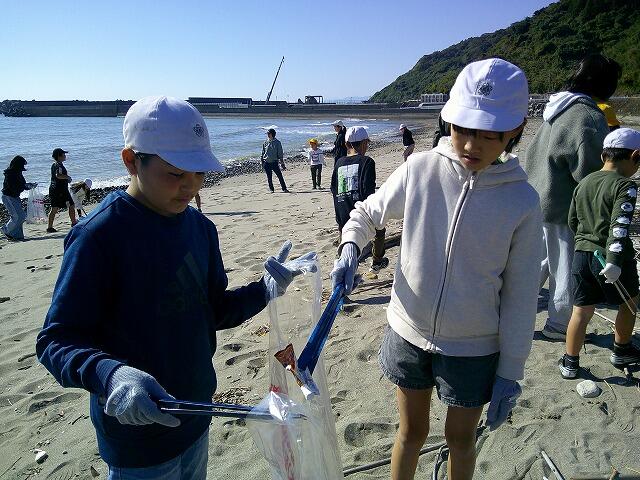 11月26日(水)に、学校近くの諏訪浜まで清掃に出かけました。高学年がリーダーシップを発揮し、自分のグループをまとめ、全校児童で清掃活動ができました。活動の振り返りで、高学年児童3名が自分たちが住んでいる近くの海がいつまでもきれいであってほしいと意見発表しました。ふるさとを愛する心情を育む活動になり、大いに意義のある時間でした。