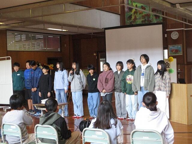 3月6日(金)に、6年生とのお別れ集会を行いました。5年生が会を進行し、1・2年生のダンス発表、3・4年生からのメッセージ披露がありました。それぞれの学年から、6年生へのプレゼント贈呈があり、一年間学校のリーダーとして頑張ってきてくれた6年生に感謝を伝えることができました。