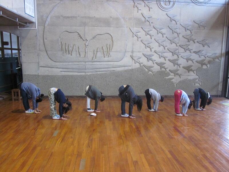 毎朝8時5分から行っている「都井っ子ストレッチ」の中に、「前屈」があります。