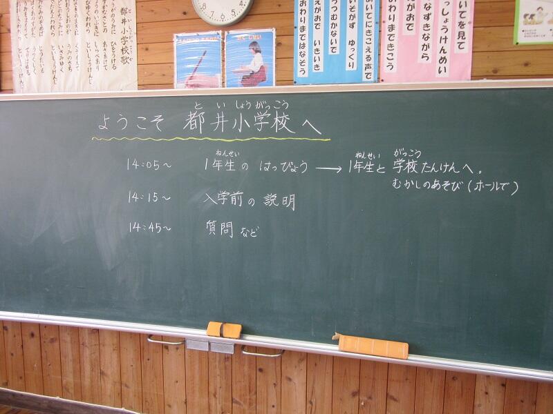 1年生は、都井小学校の一年間を説明したり、新入生と一緒に学校を歩いて、案内をしたりしていました。