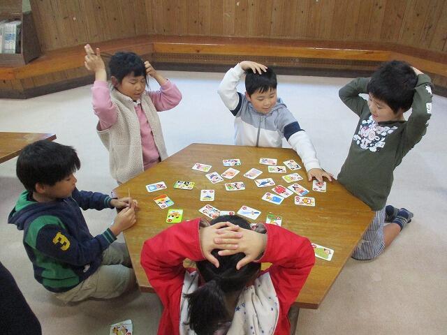 12月1日(月)1校時に、「校内カルタ大会」を実施しました。1・2年生は「ことわざカルタ」、3年生以上は「くしま学カルタ」で、各グループで読まれた札を取り合いました。各学年の代表でペアをつくり、決勝戦を行うこともできました。一生懸命取り組むことができました。