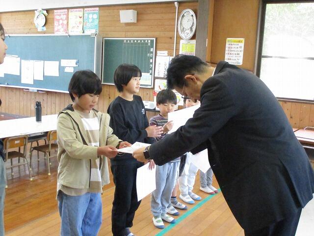 読書集会の後、夏休み中に健康に関する「ハッピービンゴカード」に頑張って取り組んだ皆さんを表彰しました。