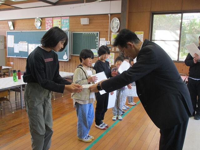 今年度から通知表が年2回の配付になっているため、本日が前期の通知表配付日でした。1年生は初めての通知表を担任の先生からもらっていました。