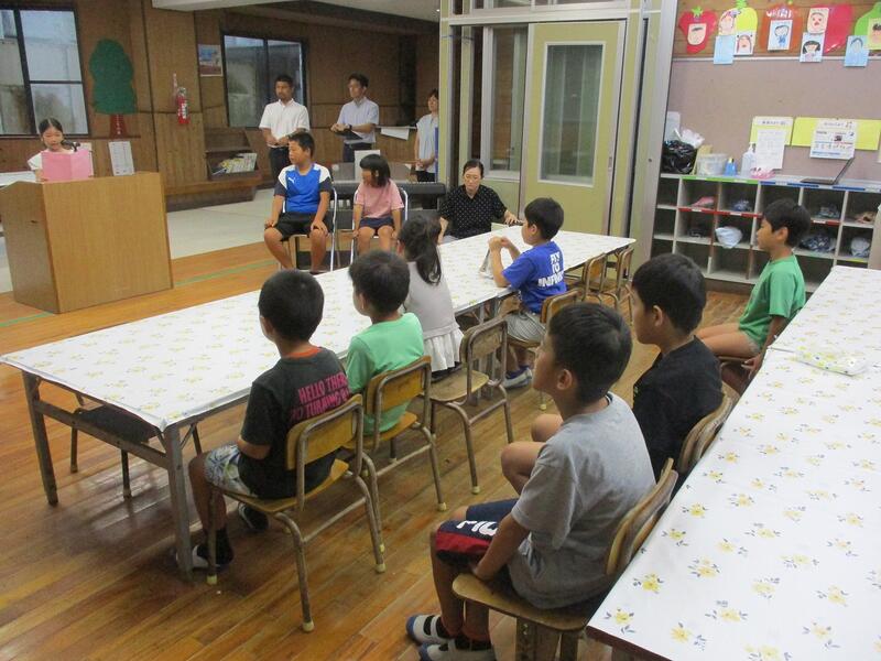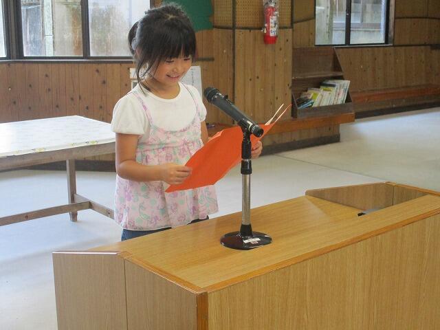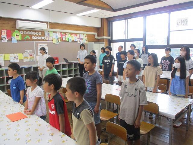始業式は、エアコンのあるランチルームで行いました。3名の代表児童が2学期に頑張ることを笑顔で発表してくれました。82日間の2学期に、24名の児童がそれぞれのペースで成長してくれることを期待しています。