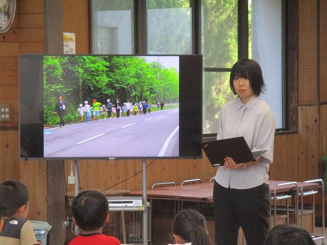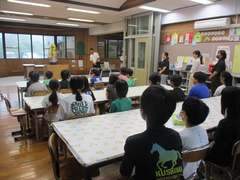 その後、6年生が6月5日(木)・6日(金)に1泊2日で、鹿児島に修学旅行に行ったことを報告してくれました。修学旅行で訪れた場所や施設での様子を伝え、2日間で学んだことをプレゼンで分かりやすく発表してくれました。楽しく過ごすことができ、学びの多い修学旅行になったようでした。
