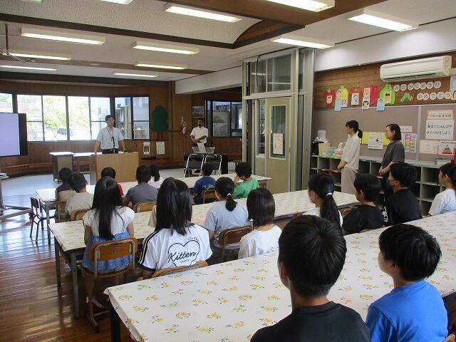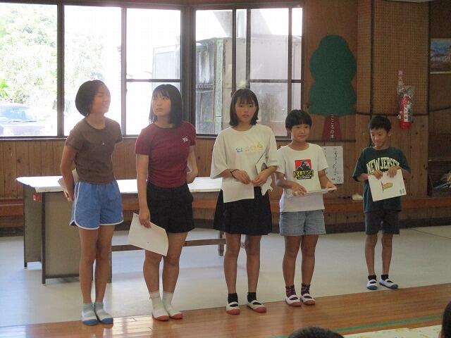 終業式の後に、安全で有意義な夏休みになるように、生徒指導主事の先生から話がありました。都井地区は海に近いので、夏休み中に地震・津波が起きた際には、避難訓練のことを想起し高い場所に逃げることも再度確認しました。