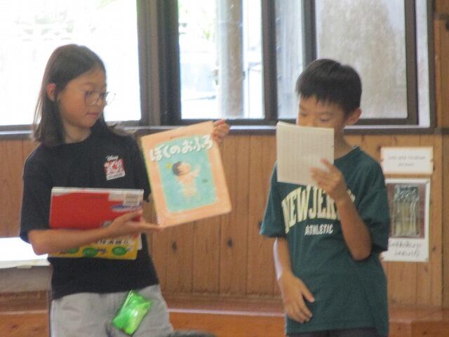 1・2年生の児童が小学校生活を劇にして、新入児に紹介しました。劇をしている1・2年生がずいぶんお兄さんお姉さんに見えました。