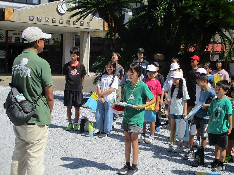 10月10日(金)に、全校児童で都井岬に出かけました。9月25日(木)の串間市教育委員会生涯学習課の秋田優様の説明を受けて、実際に「都井岬の希少植物」を観察しました。今回も講師として秋田優様に同行していただき、御崎馬による環境保全についても学習を深めることができました。これまで知らなかったことを多く学ぶことができました。