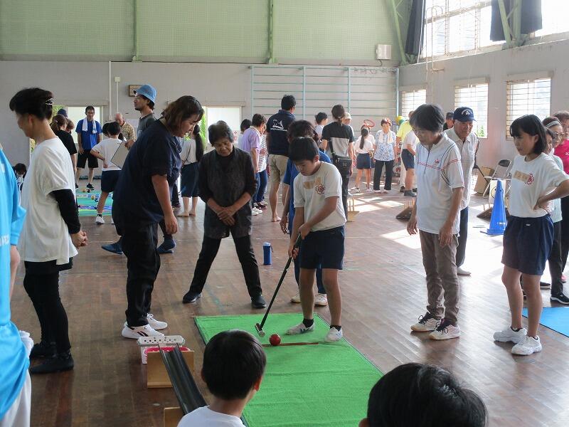 10月19日(日)に、本校体育館で「異世代間交流スポーツ大会」を実施しました。地区の方、子どもたち、保護者、学校職員が、4つの室内競技(ゲーム)で交流を深めました。都井地区社会福祉協議会の方が中心となり、準備から運営までを行っていただきました。地域の活性化・ふれあいを目的に、毎年実施しています。地域の方と子どもたちがたくさんお話ができ、大変有意義な交流会でした。参加していただいた地域・保護者の皆様、ありがとうございました。