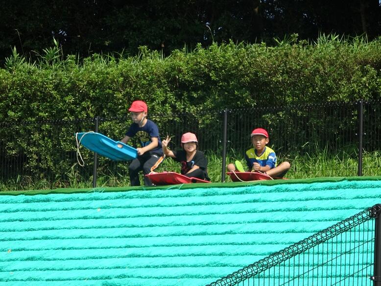 おいしいお弁当を食べ、おやつも食べ、広場で思い切り遊びます。草スキーも出来ました。