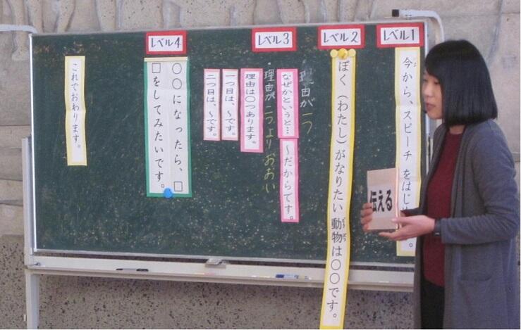 まず初めに、上手なスピーチをするためのコツやテーマを聞きます。(今回のテーマは、「なってみたい動物は何か」でした。)