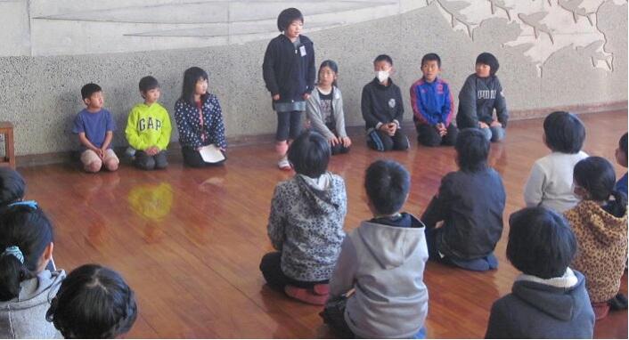 都井小学校では、 表現力を育てるために、スピーチ集会をしています。
