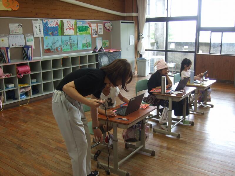 今日は1年生も5時間目がありました。5時間目は担任の金丸先生とZoomでつないで国語の勉強をしました。頑張っていました。