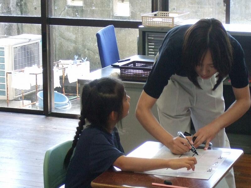 4年生は教頭先生と習字の学習をしました。ぼくはとっても上手にできましたと見せてくれました。