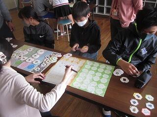 5・6年生が中学校の栄養教諭と一緒に家庭科の学習をしました。テーマは「献立の栄養のバランス」です。