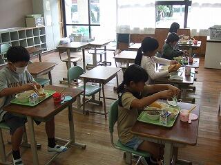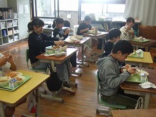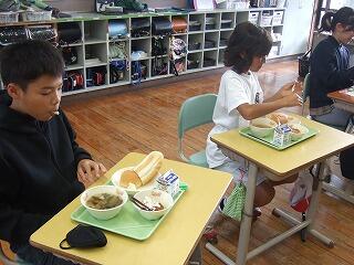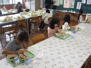 今日は給食の様子をお知らせします。みんなとっても美味しそうに食べていました。持久走の練習も始まってお昼にはお腹がペコペコになるみたいです。