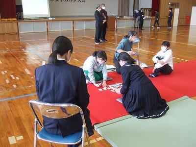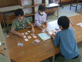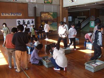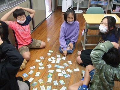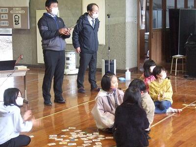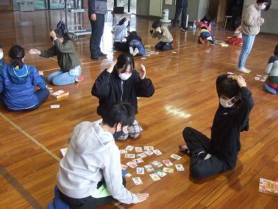 今日は朝の活動の時間から1時間目にかけて、全校児童でことわざカルタ大会を行いました。これまでみんな練習をしてきた成果を発揮して、読み札を読まれたり、意味を言われたりしただけで素早くとっていました。特に決勝の校長先生が意味を先に言われる難しいものでは、例えば、幸運な~と言っただけで「たなからぼたもち」をとるなど、意味と言葉をしっかりと覚えていて、1年生から6年生まで熱戦を繰り広げてくれました。