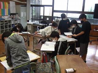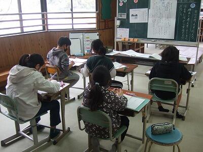 34年生は国語の授業でした。複式授業なので自分たちで進めないといけない場面もあります。しっかり話し合って学習をまとめていました。
