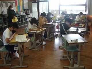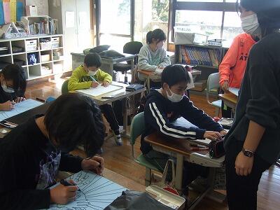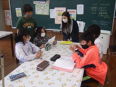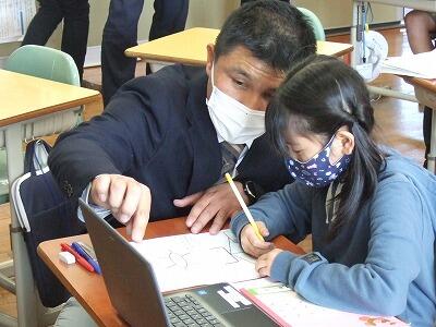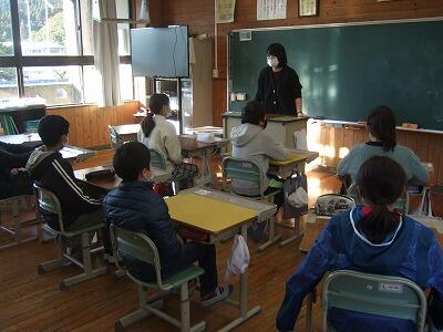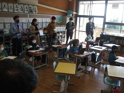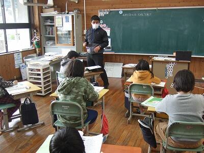 5年生は教室で担任の黒原先生と授業、6年生は英語で担当の櫻木先生と授業を行っていました。さすが高学年、集中して授業を受け、姿勢もとてもよかったです。
