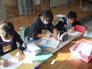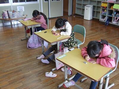 1年生はドリルを使って一生懸命漢字の練習をしていました。