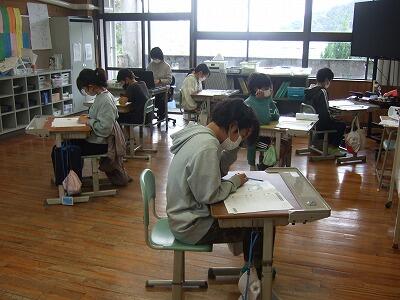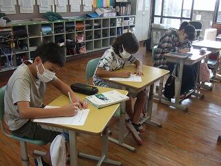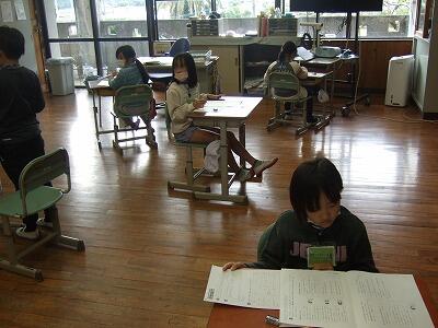3・4年生は算数の勉強でした。よく考えて問題を解いていました。