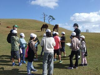 今日は3・4年生が都井岬の馬や施設等の見学に行きました。現地では串間市観光物産協会の都井岬野生馬ガイドの方から説明を聞きながら馬を見たり観光するにあたって気を付けなければならないことなどをメモしました。都井岬の馬は野生馬なので知らずに近寄ると怪我をしてしまうことや餌などをやってはいけないこと、死んでしまったらどうなるのか、グループで別れて生息していることなどを興味深く聞いていました。