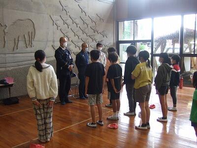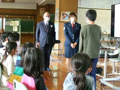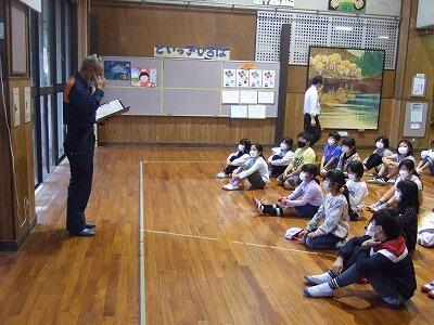 釘村先生からはよい子の決まりについてお話がありました。命は一つなので大切にしてほしい、命がなくなると一生悲しい思いをする人がいますというお話がありました。自転車のヘルメット、子どもだけで釣りに行かない等、しっかり守りましょう。