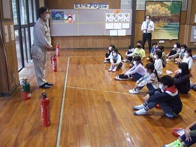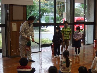 さて、今日は火災の避難訓練を行いました。串間市消防局の所員の方々に火事を起こさないための方法や火事が起きた時の対処の仕方などを詳しく丁寧に教えていただきました。