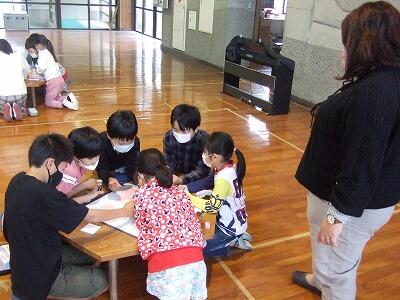 2年生は自由工作でしたが、校長先生とかけ算のます計算で競争したひともいました。かけ算がスラスラ言えるようになってきています。