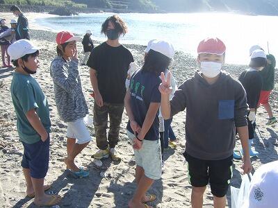 今日は海岸の清掃と異世代交流スポーツ大会があるはずでしたが、コロナ感染防止や天候不良のため中止となりました。子どもたちは午前中授業を受けて帰りました。