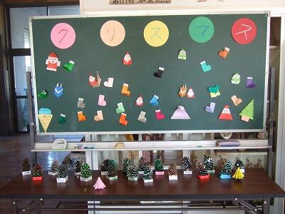 1年生がクリスマスパーティ用の飾りをつくったと見せに来てくれました。とっても上手に作れていましたよ。