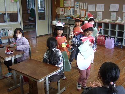 今日は節分です。給食でも豆や手巻きのりがでました。みんな上手に手巻きをつくって食べていました。今年の恵方巻の方角は南南東だそうですが、みんなは真っ直ぐ向いて行儀よく食べていました。