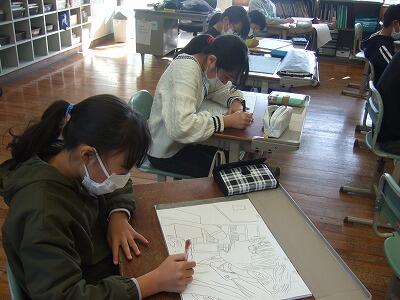 56年生は版画、彫刻等を上手に使って掘り進めていました。