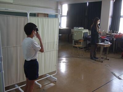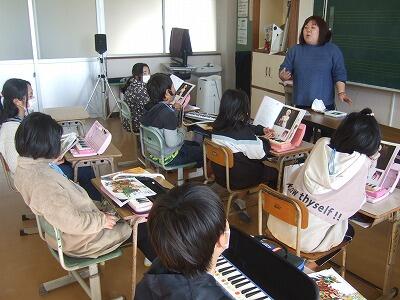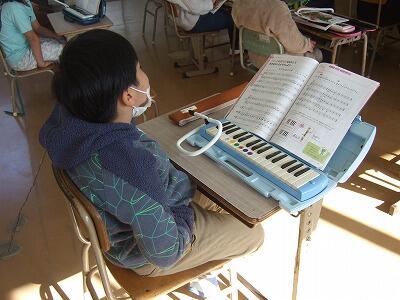 56年生は音楽の授業。これは新しく習う歌を聞いていることろです。