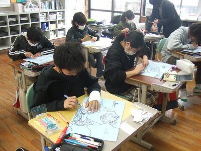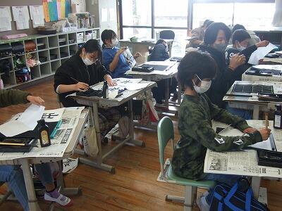5・6年生は版画、下絵堀もいよいよ佳境です。