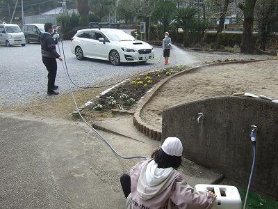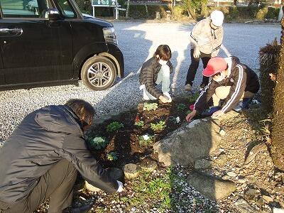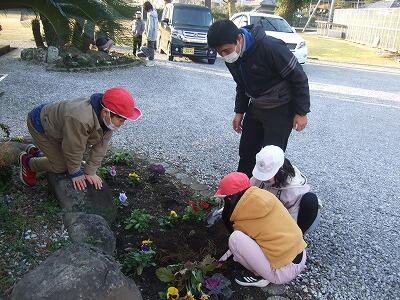 今朝はみんなで花壇のお世話をしました。春に向けて色とりどりの花が咲き始めています。