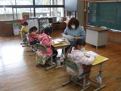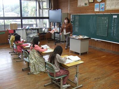1年生は漢字の練習・2年生は「あめ」雨と飴のイントネーションの違いなどを学習していました。